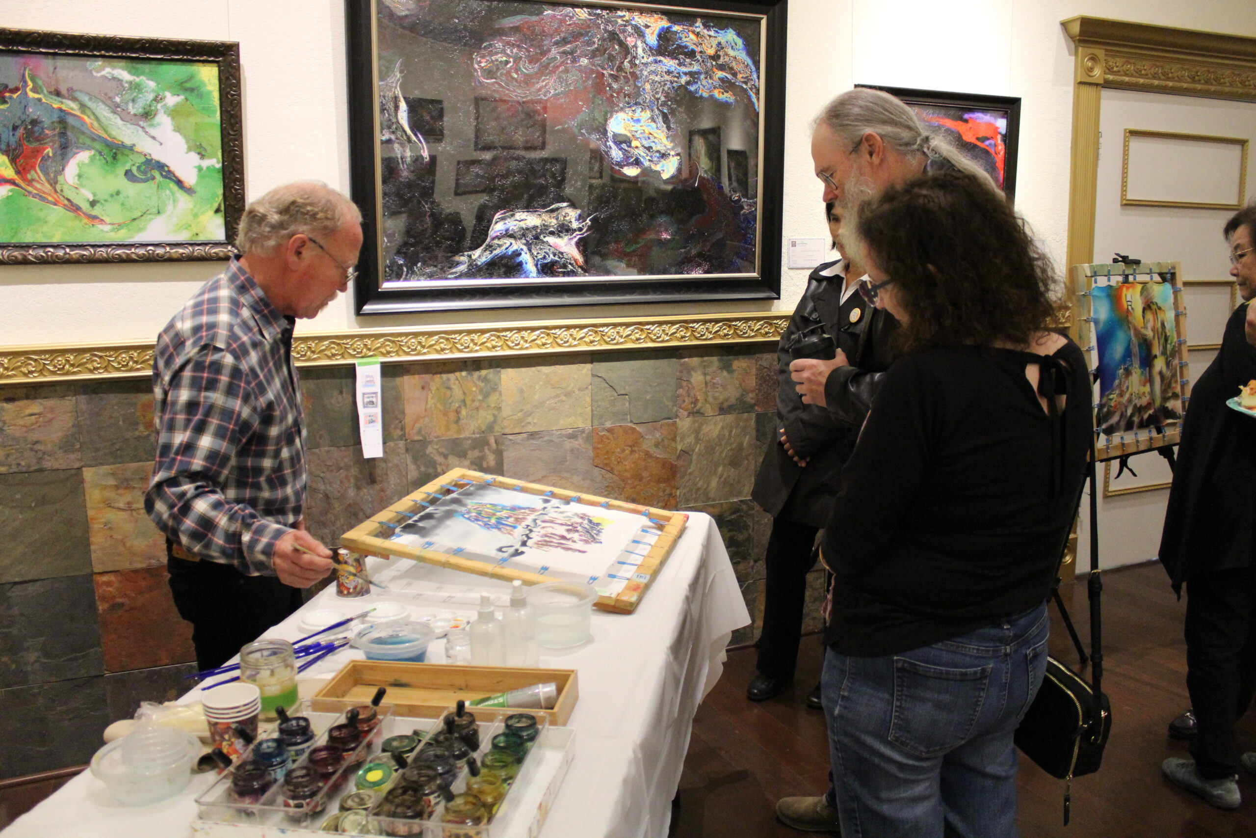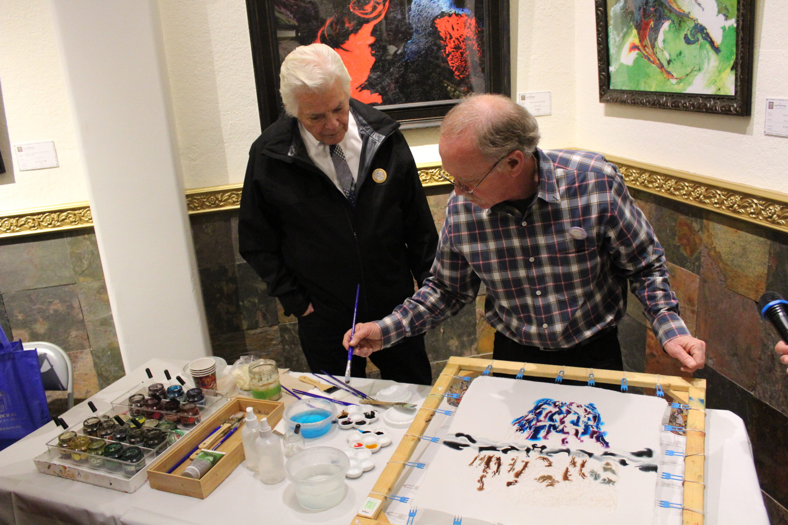 Mr. Jim Berry, a faculty member at Caltech demonstrated silk painting after the ceremony