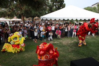 The ceremony was followed by a big festival held at the Heritage Plaza Park in downtown Covina. There were a lot of entertainment programs including live bands, live DJ, the traditional Chinese lion-dance, Shaolin Kung-Fu show and the magical Sichuan face-change show. There were also many charity sales booths for arts and crafts, discounted clothes, face-painting and a balloon artist. The museum provided gifts worth thousands of dollars for raffle drawings.